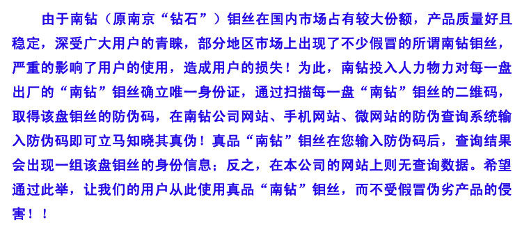 本公司所销售的南钻牌钼丝是与厂家直接订货,100%正品保证!