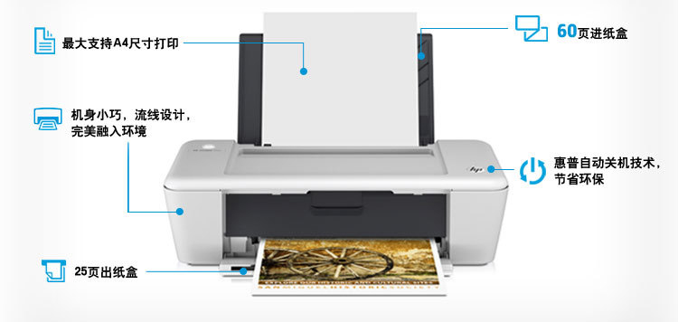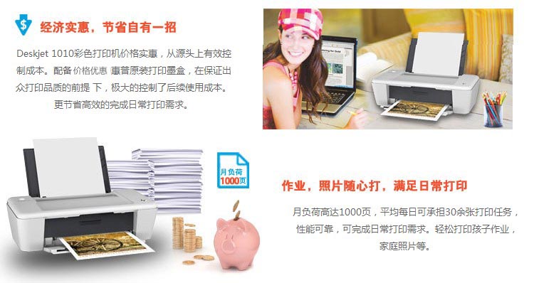 HP Deskjet 1010打印机 ? HP 802s号黑色墨盒(约120页) ? HP 802s号彩色墨盒(约100页) ? 软件CD?x1 ? 安装指南?x1 ? 电源?x1 ? 电源线?x1 ? USB连接线?x1