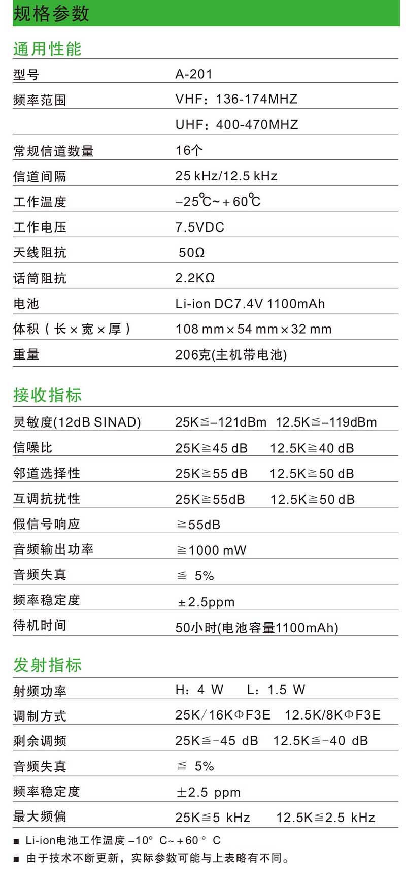 VHF:136-174MHz UHF:400-470MHz