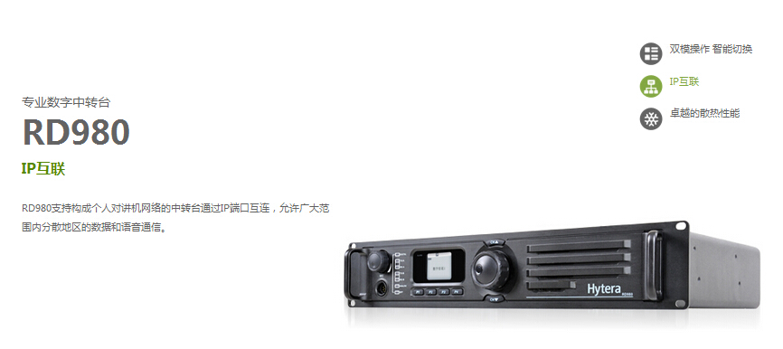 RD980支持构成个人对讲机网络的中转台通过IP端口互连,允许广大范围内分散地区的数据和语音通信。
