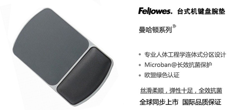 范罗士 Fellowes 尊贵丝质白框鼠标垫 伯爵灰 CRC91741