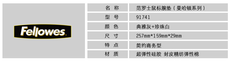 >范罗士 Fellowes 尊贵丝质白框鼠标垫 伯爵灰 CRC91741