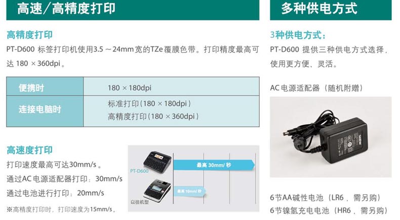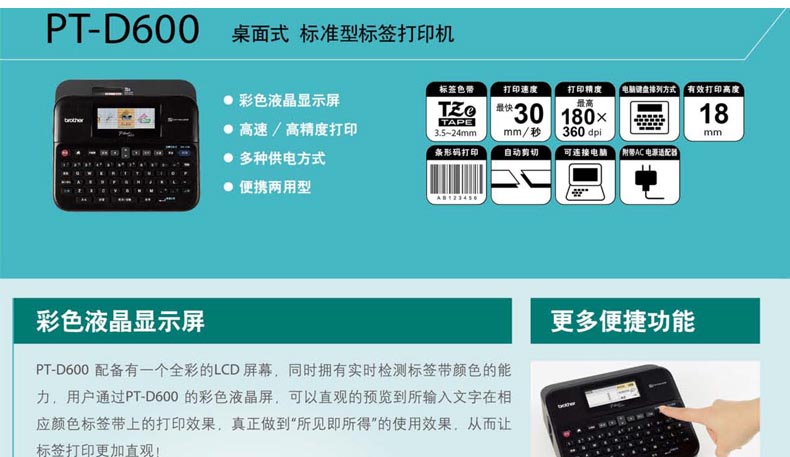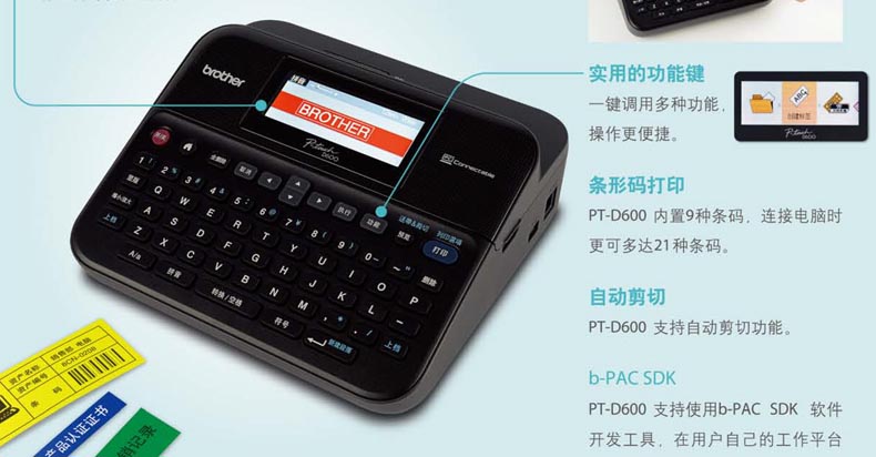 >兄弟桌面式标准型标签打印机,PT-D600 打印宽度3.5-24mm