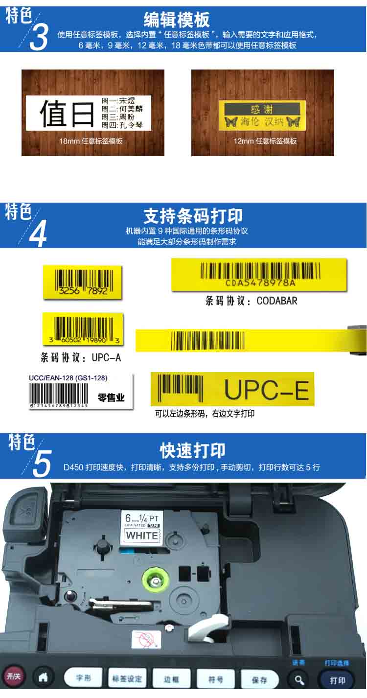 打印高度 | 15.8mm(18mm宽的标签色带) |
