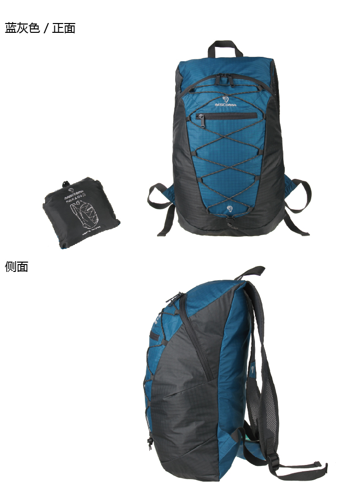 >MASCOMMA 双肩背抽绳折叠收纳包 BS00203/BGY (蓝灰)