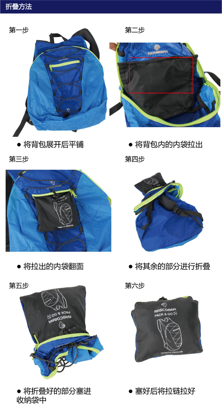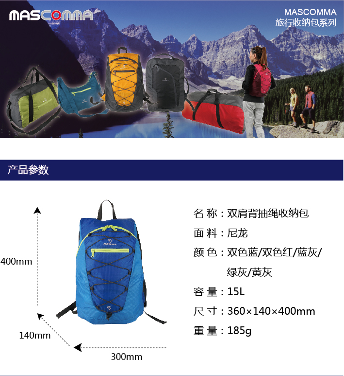 >MASCOMMA 双肩背抽绳折叠收纳包 BS00203/RRD (双色红)