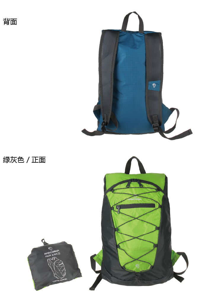 MASCOMMA 双肩背抽绳折叠收纳包 BS00203/GGY (绿灰)