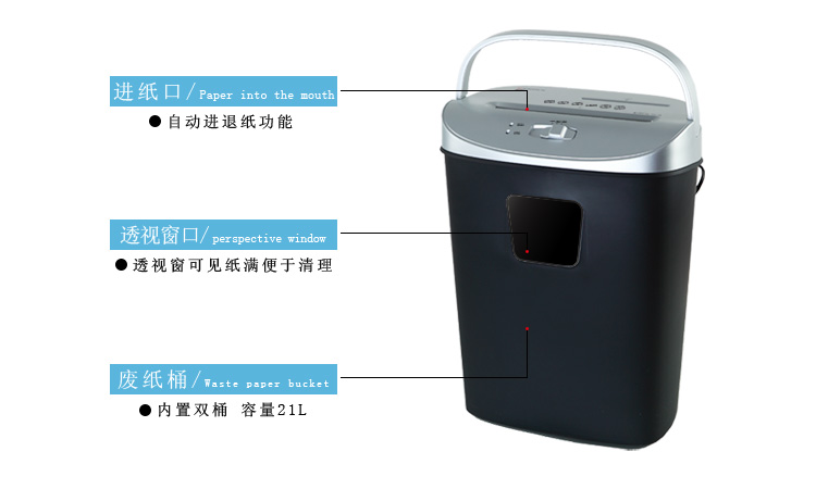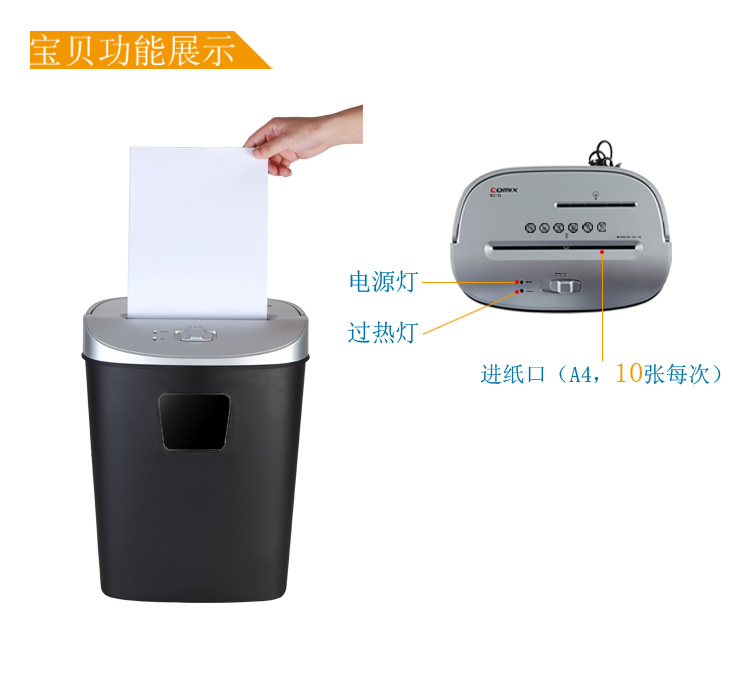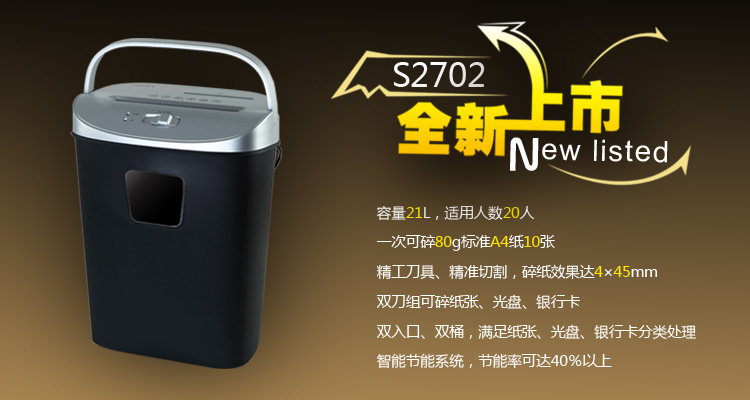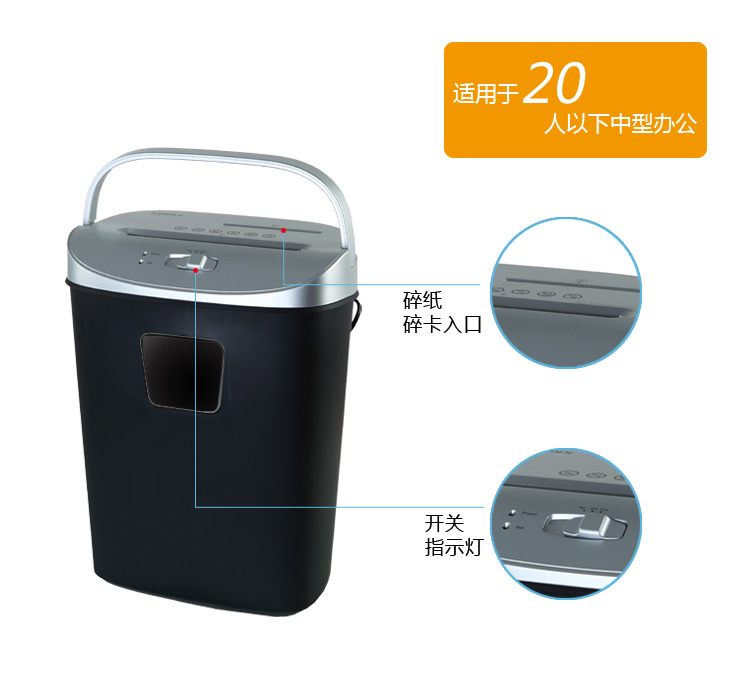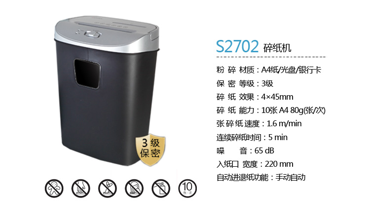 >齐心 S2702 强力多功能型碎纸机 4×45mm/10张纸/21L/双入口/续航5分钟 黑