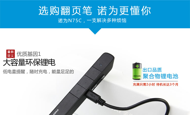 >诺为 KNORVAY 翻页激光笔 N75C 绿光 充电式(黑色)