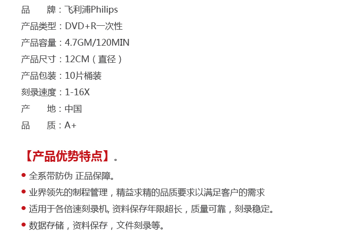 飞利浦 DVD+R 光盘 4.7G/16X(50片筒装) 银色
