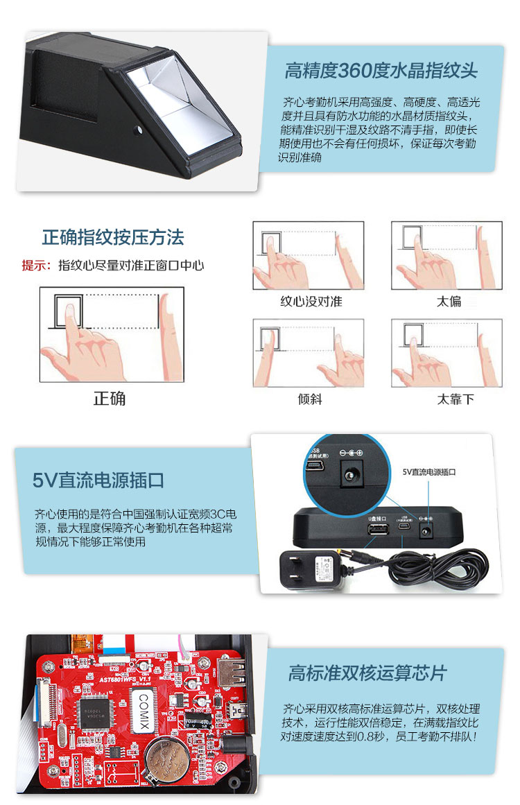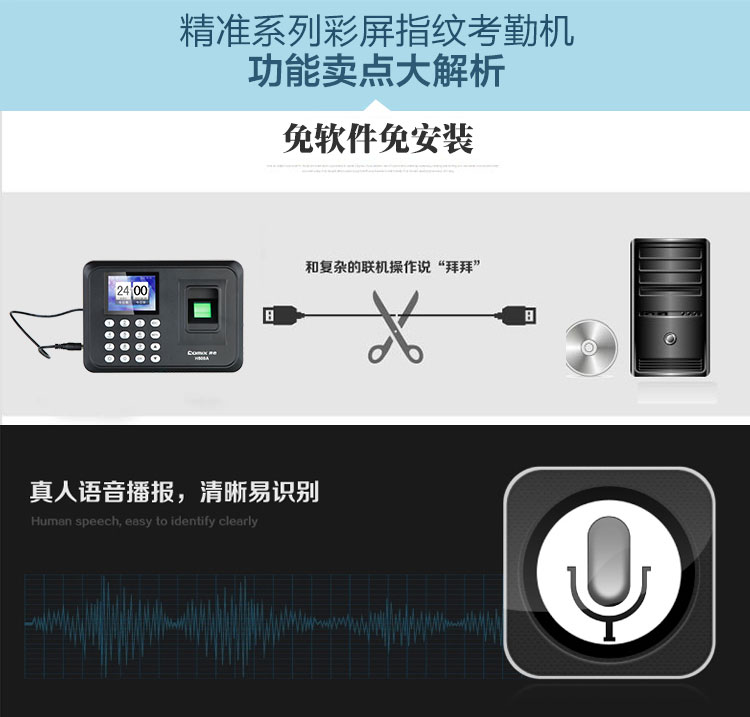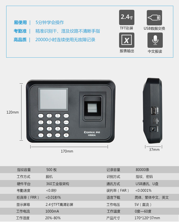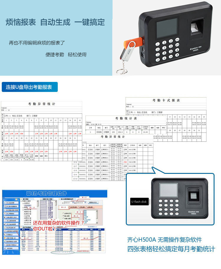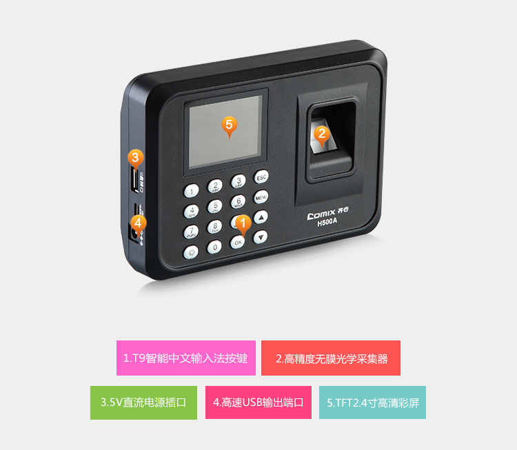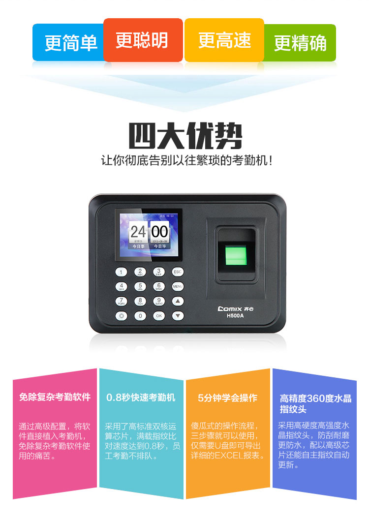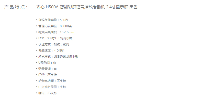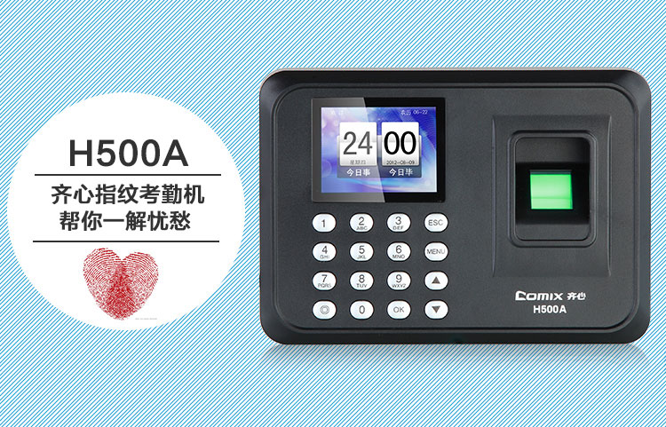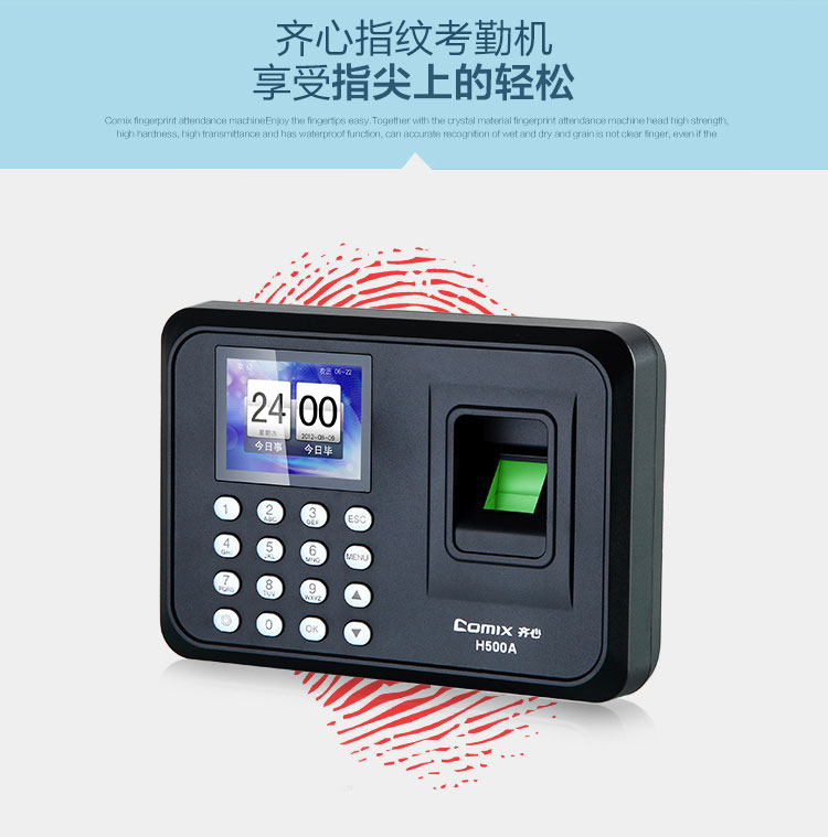 >齐心 H500A 指纹考勤机 免软件免安装彩屏 黑