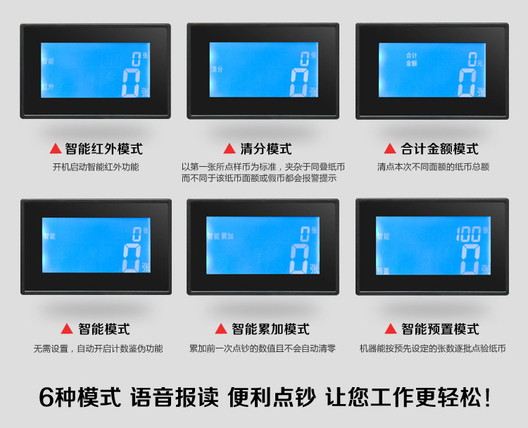 5元、10元、20元、50元、100元可混合点钞