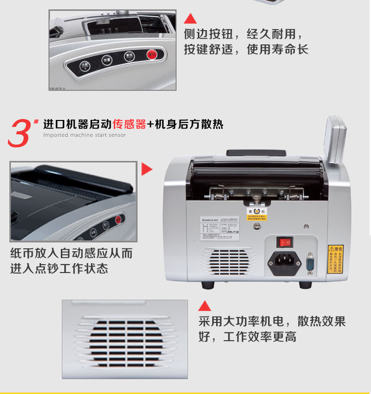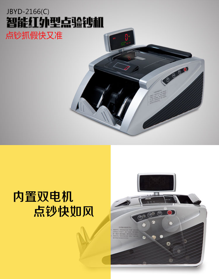>齐心 JBYD-2166(C) 智能红外点钞机 验钞机 双屏 3对磁头2对红外 黑银