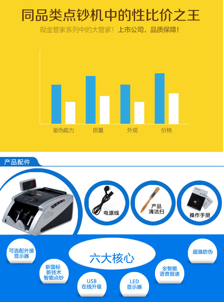 齐心 JBYD-2166(C) 智能红外点钞机 验钞机 双屏 3对磁头2对红外 黑银