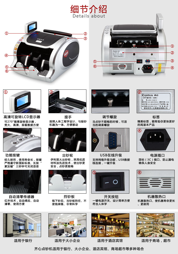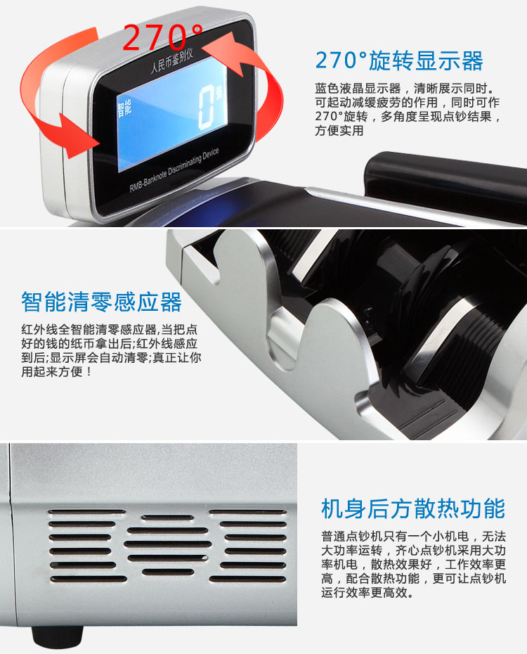 >齐心 JBYD-2188(C) 语音红外双冠王点钞机 验钞机 3磁头2对红外 黑银