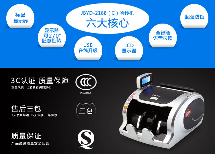 齐心 JBYD-2188(C) 语音红外双冠王点钞机 验钞机 3磁头2对红外 黑银