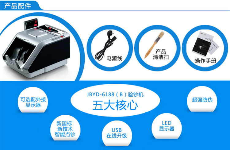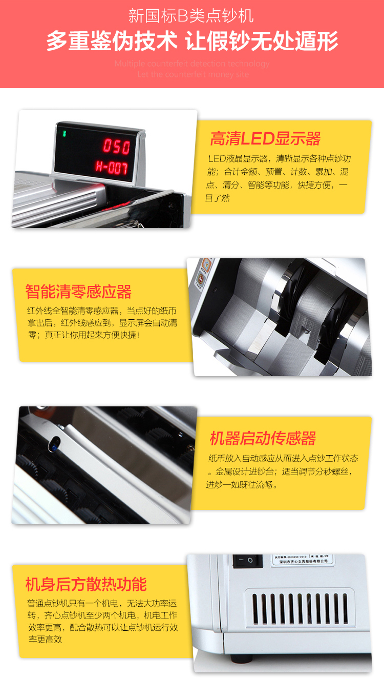 >齐心 JBYD-6188(B) 超级抓假王点钞机 验钞机 单屏5磁头10红外 黑银