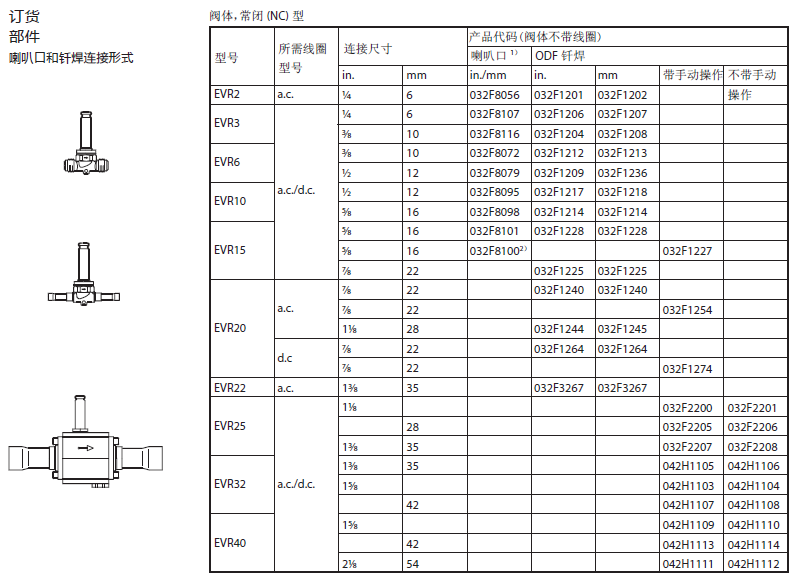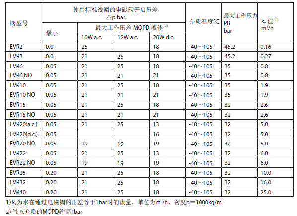EVR型电磁阀为直动式或伺服式电磁阀,用于氟化物制冷剂的液体管路、吸气管路和热气管路。