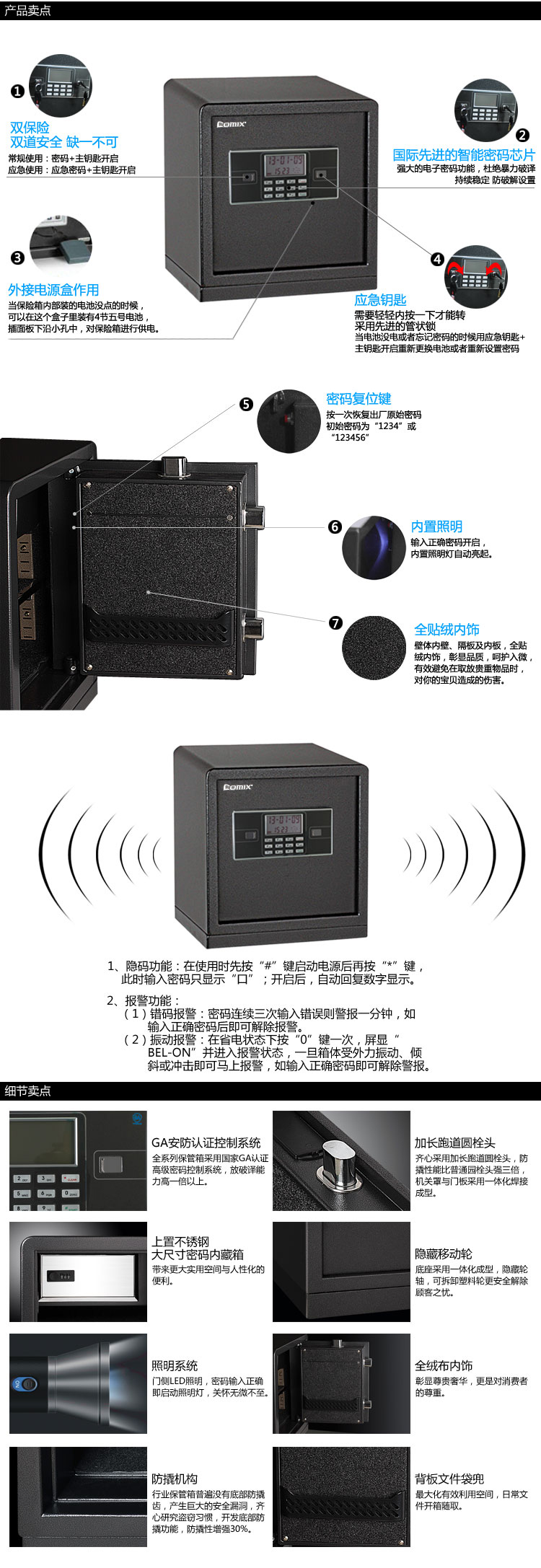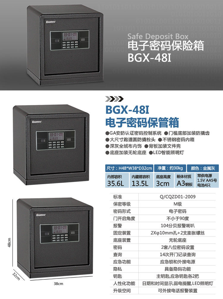 >齐心 BGX-M/D-48I 钢七连电子密码保管箱 高48CM 灰