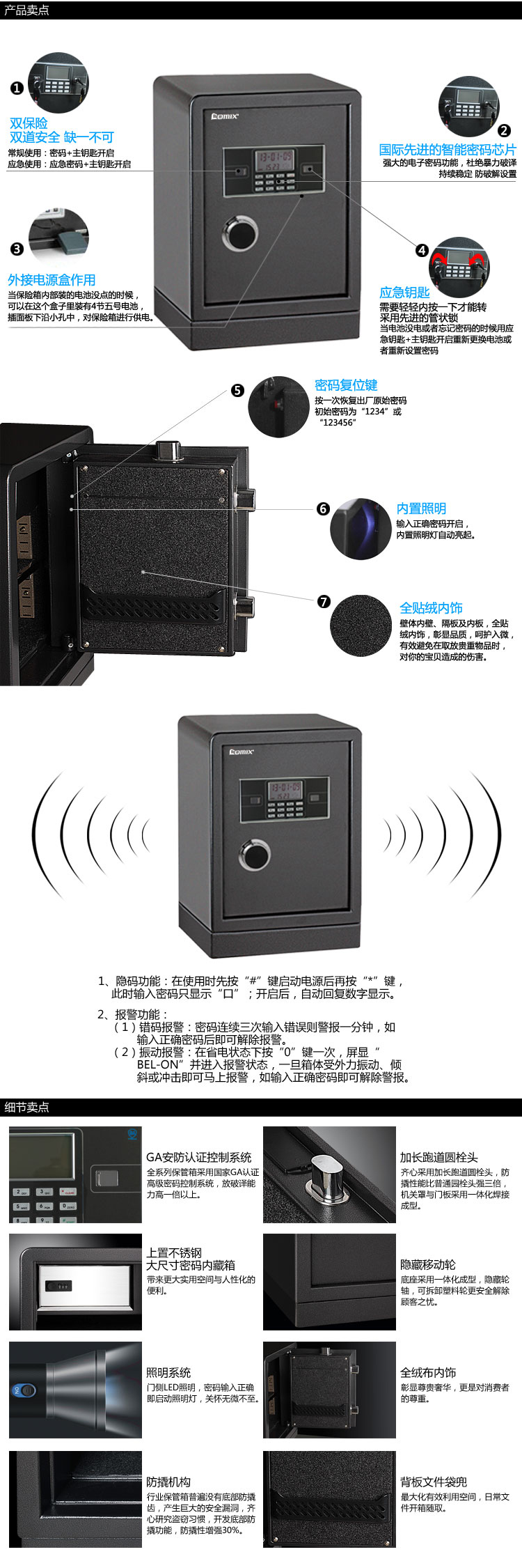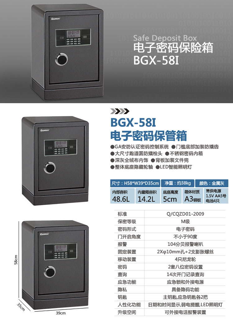 >齐心 BGX-M/D-58I 钢七连电子密码保管箱 高58CM 灰